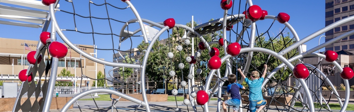 Civic Plaza hosts a variety of outdoor events in downtown Albuquerque. This project renovated the space to create a festive environment for play and community building.